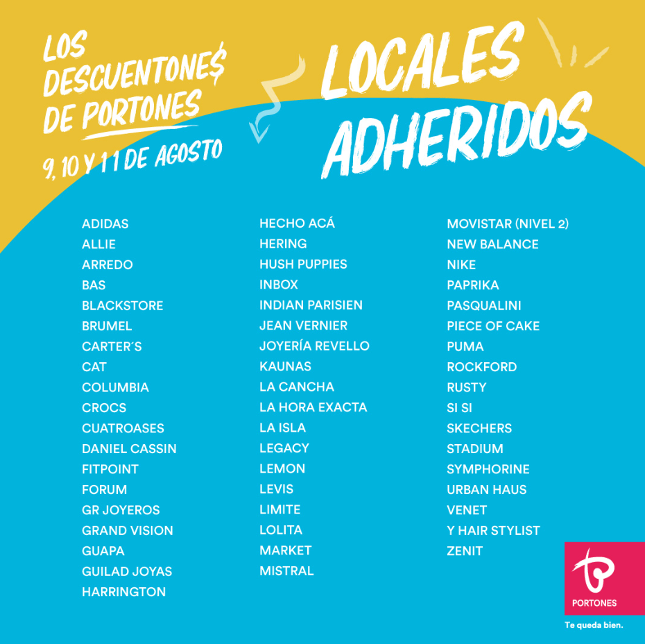 Aprovecha los descuentos 9, 10 y 11 de Agosto en Portones Shopping. Locales adheridos en la imagen ! #uruguay#descuentos